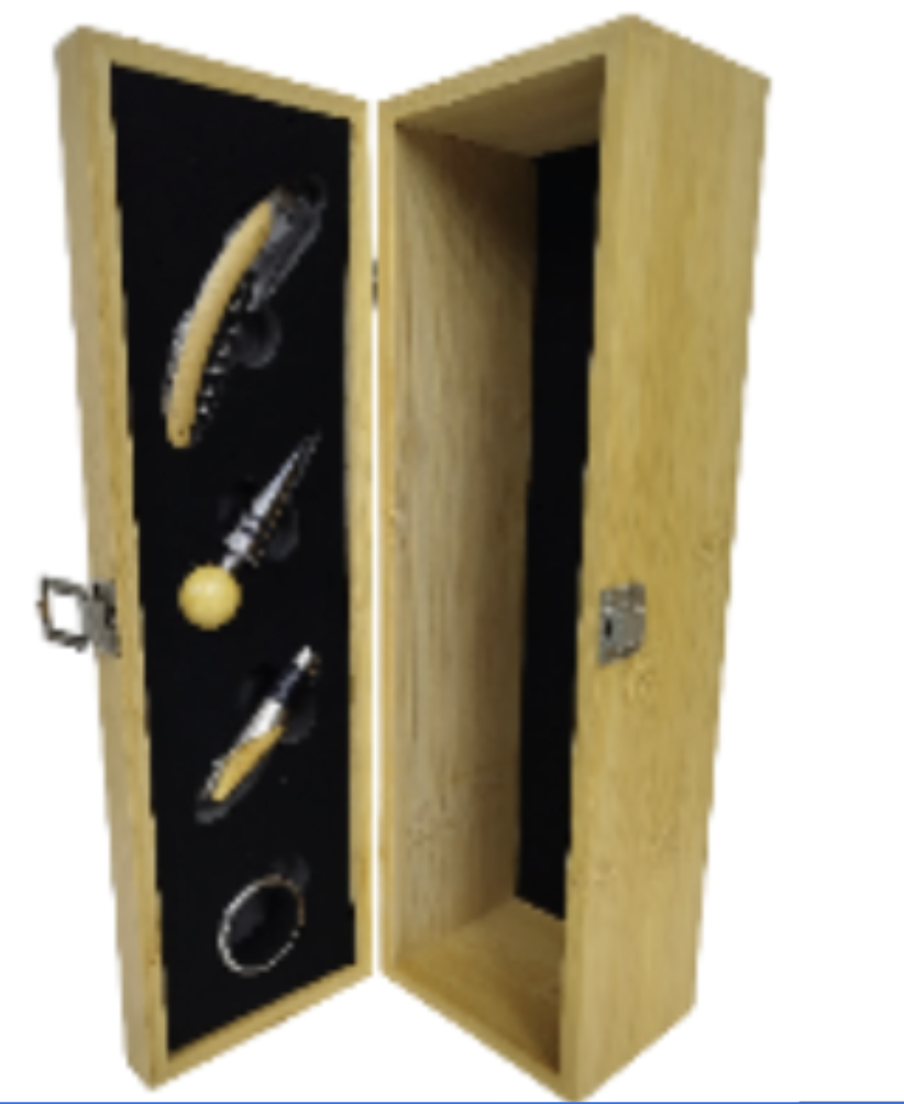 • Material: Caja de bamboo y Accesorios de acero inoxidable.